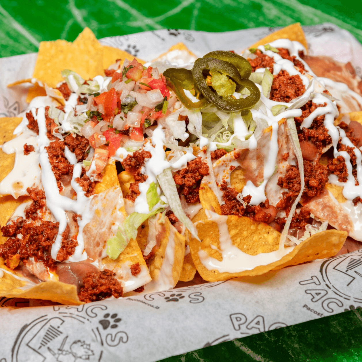 House made chips, beans, choice of meat. Topped with our paco cheese, lettuce, and sliced jalapeños