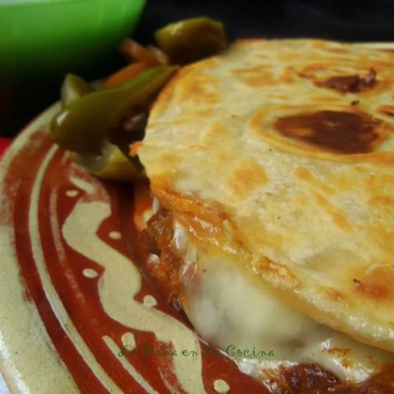 A flour tortilla with your choice of meat with cheese, heated on a comal and served with our house grilled onions. The name is either a reference to the white flour used, or its creation, when two women from the united states asked a Mexico City taquería for a Mexican dish but disliked corn tortillas
